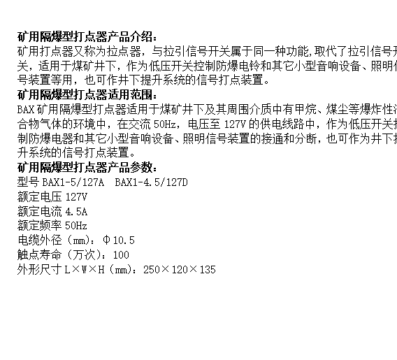 多型号供应 矿用拉点器BAX1-5/127D 电压127V 维护方便